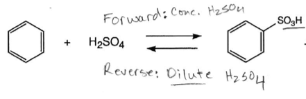 The sulfonation reaction is reversible by using either concentrated/dilute sulfuric acid. Which is which?