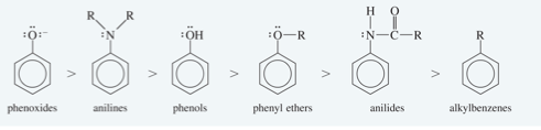 Aka alkylbenzenes and groups with lone pairs to stabilize resonance forms.