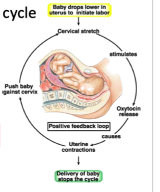 Ex; child birth stretching of cervix stim oxytocin release cuaing uterine contracions to push abby against cervix (cycle repeats until baby is delivered)