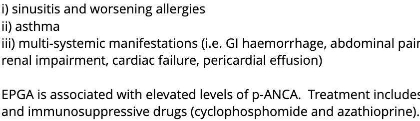side note- also associated with eosinophulic granulomatosis but the features include eospinophils