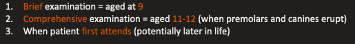 When are orthodontic examinations carried out (3 instances)