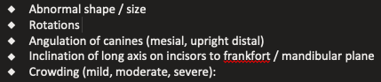 Ortho: 4 stages of intra-oral examination