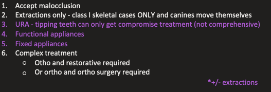 what are the 6 treatment options for an ortho treatment plan?