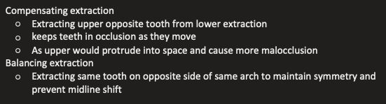 What are the two types of extraction that have to be done in response to another extraction for orthodontic treatment?