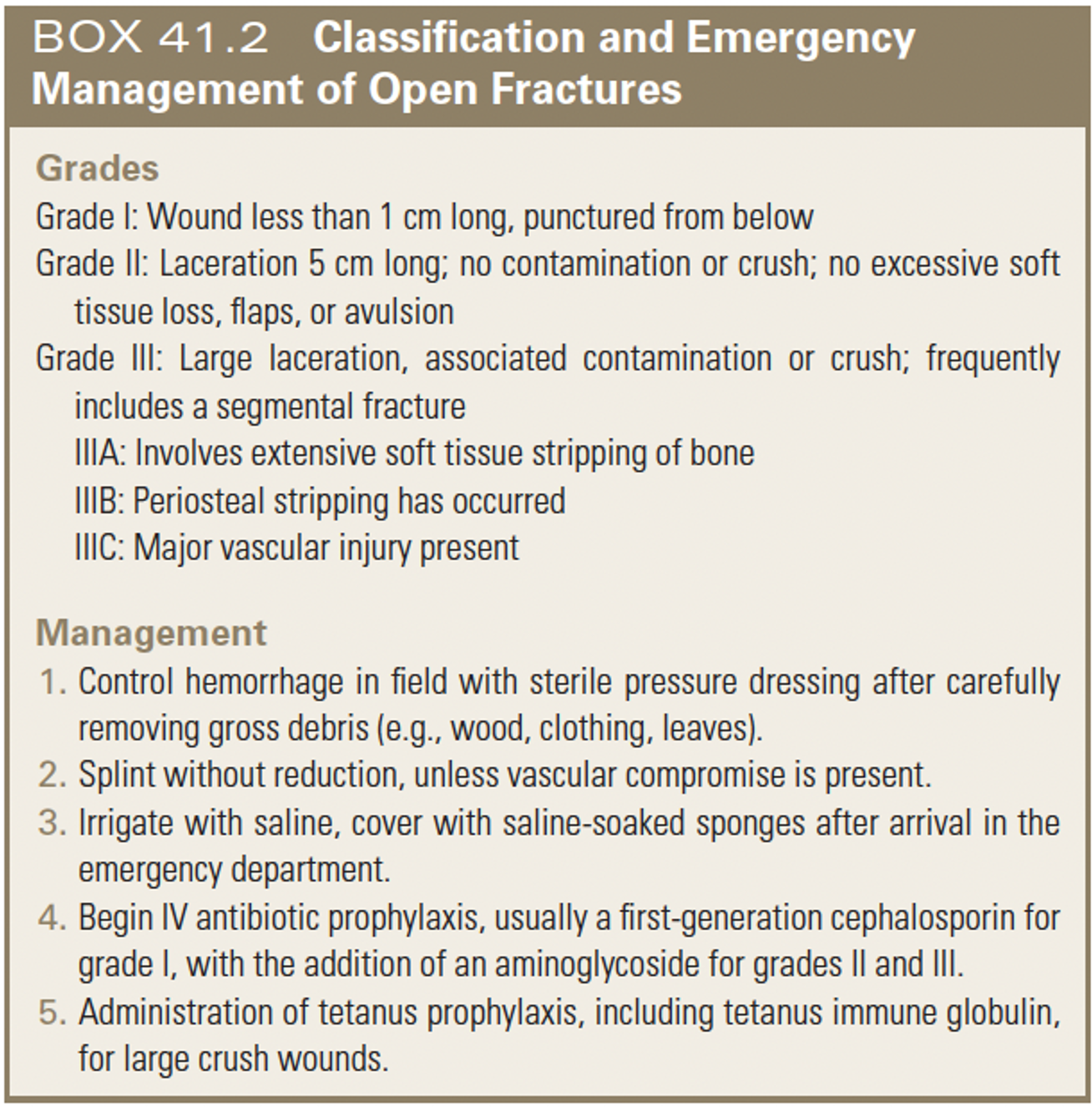 Cover with sterile dressing, ortho might change surgical approach, can be red flag for compartment syndrome
