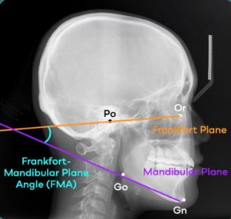The mandibular plane angle (FMA) is formed by the intersection of the _____ and _____