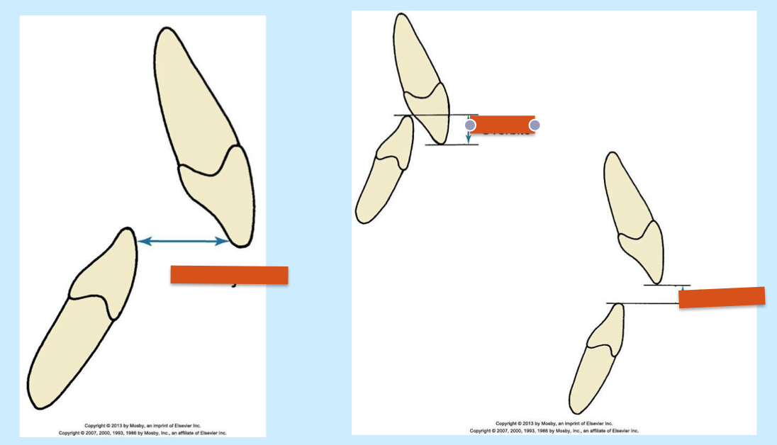 —space from slight inc in width across canines, slight labial positioning of central & laterals