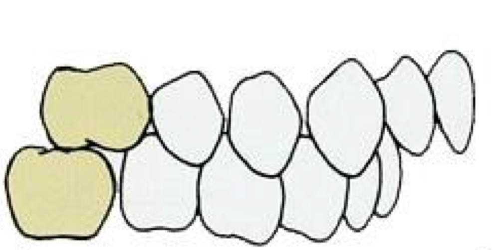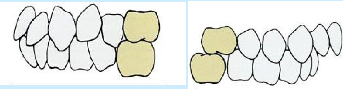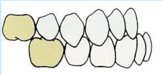 1-lower molar mesially positioned relative to upper molar, line isnt specified