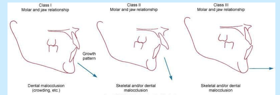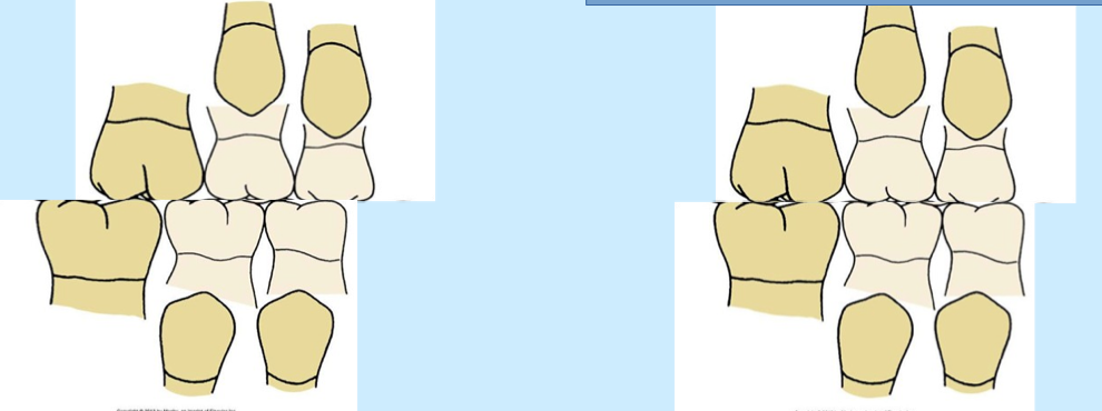 2-normal relationship of molars, line of occlusion= incorrect bc of malposed teeth, rotations, etc.