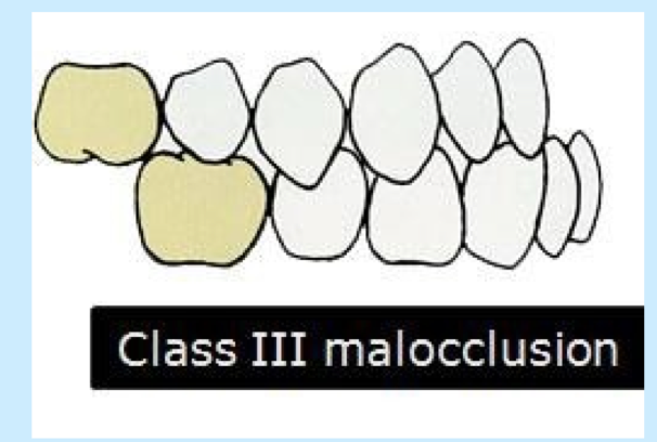 3-lower molar positioned distally relative to upper molar, line of occlusion isnt specified