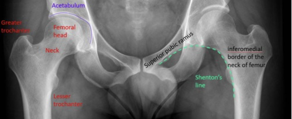 What is the line called that can be used to diagnose NOF fractures on x-ray?