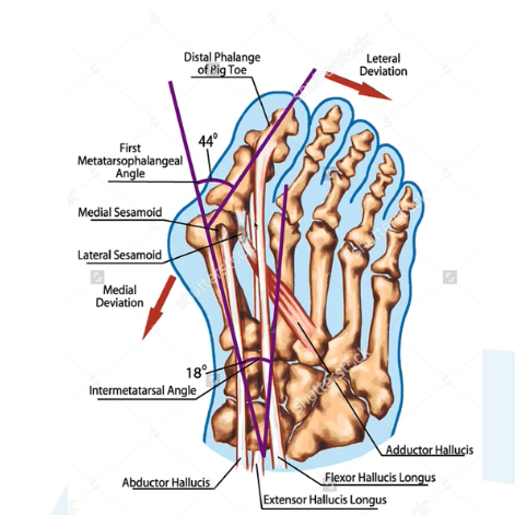 Describe the pathophysiology of hallus valgus?