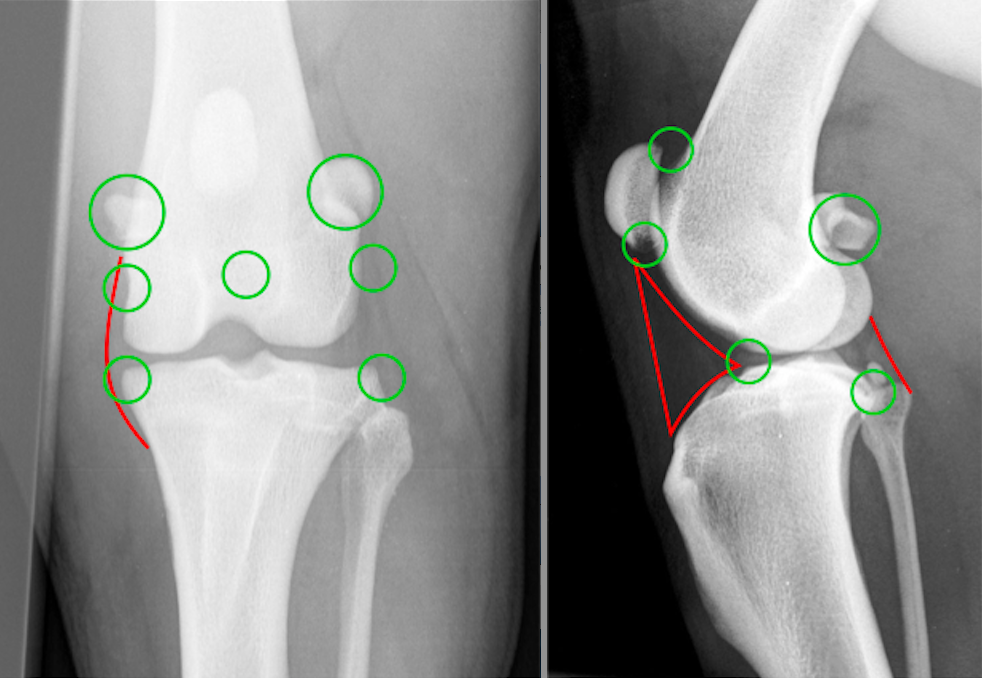 Hvordan ser korsbånd ud på røntgenbilleder?