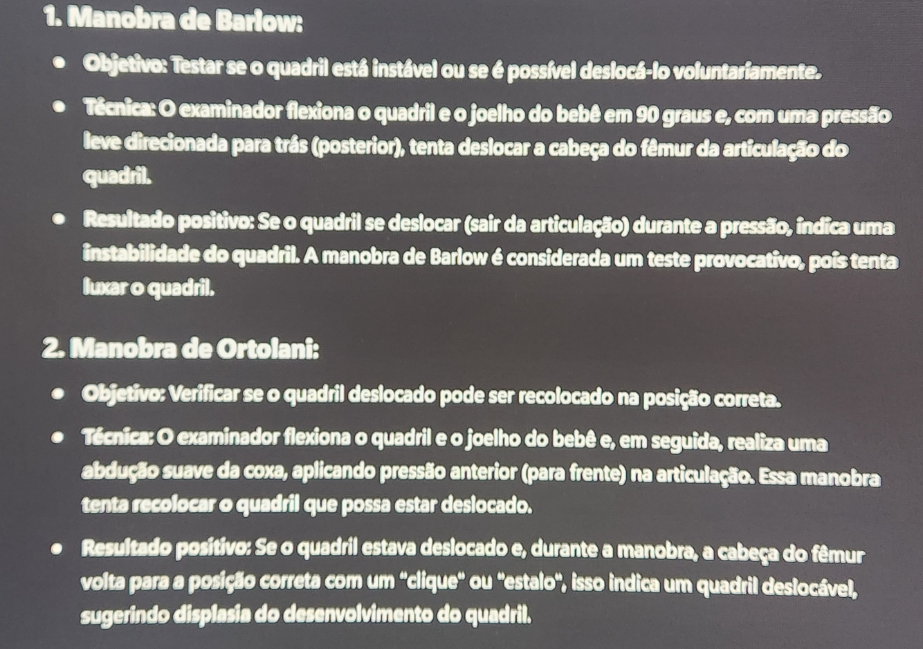 Testes para verificação de Displasia Do Desenvolvimento do Quadril (DDQ)?