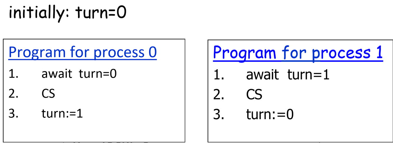 turn can have one of two possible values: 0 or 1. thus the two process cannot simultaneously enter the CS.