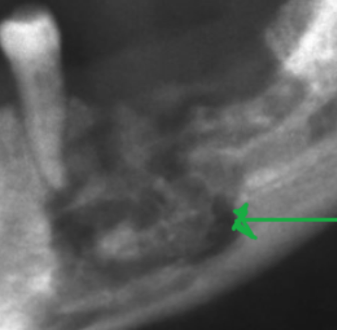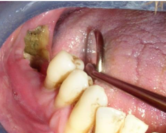 3- Exposed bone extending out of the alveolar bone.