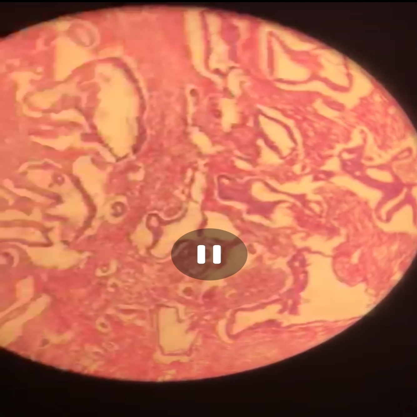Pink but vacuoles severely distorted and wavy