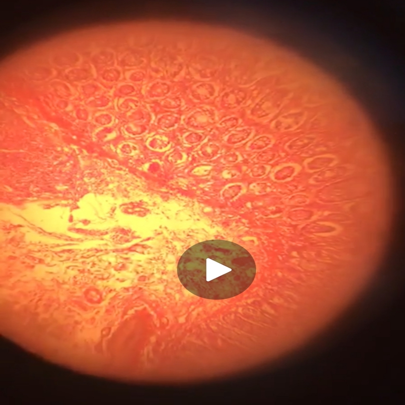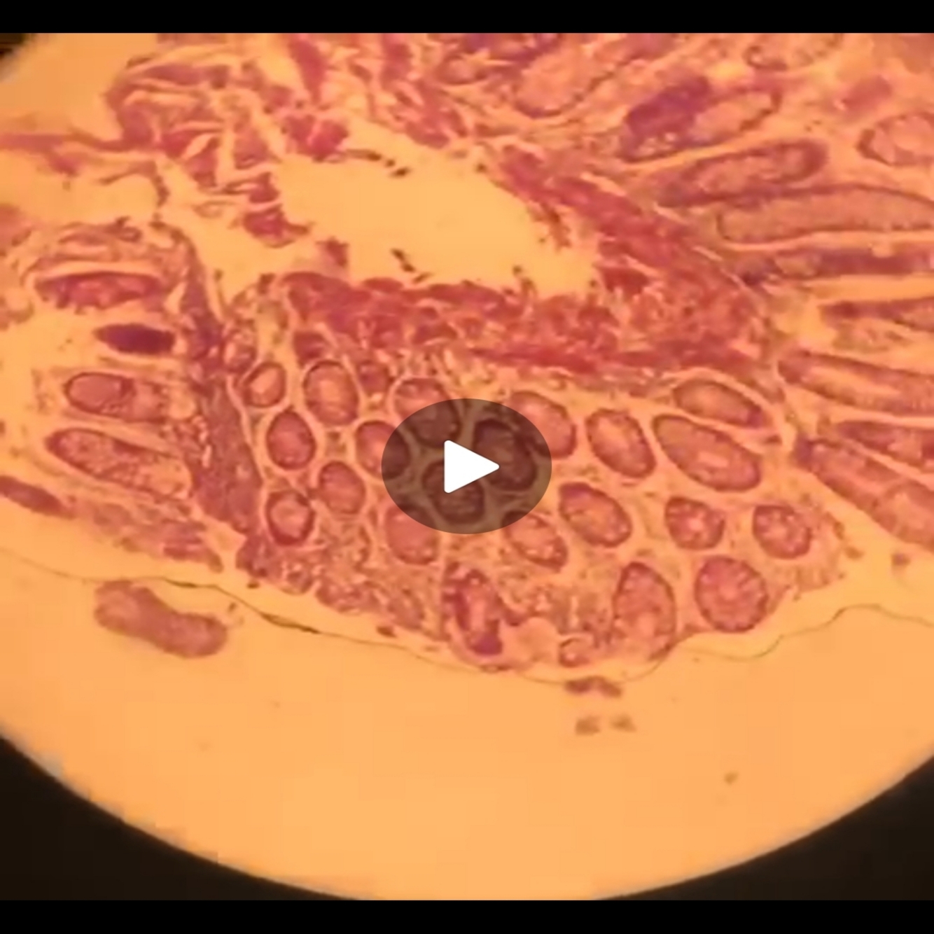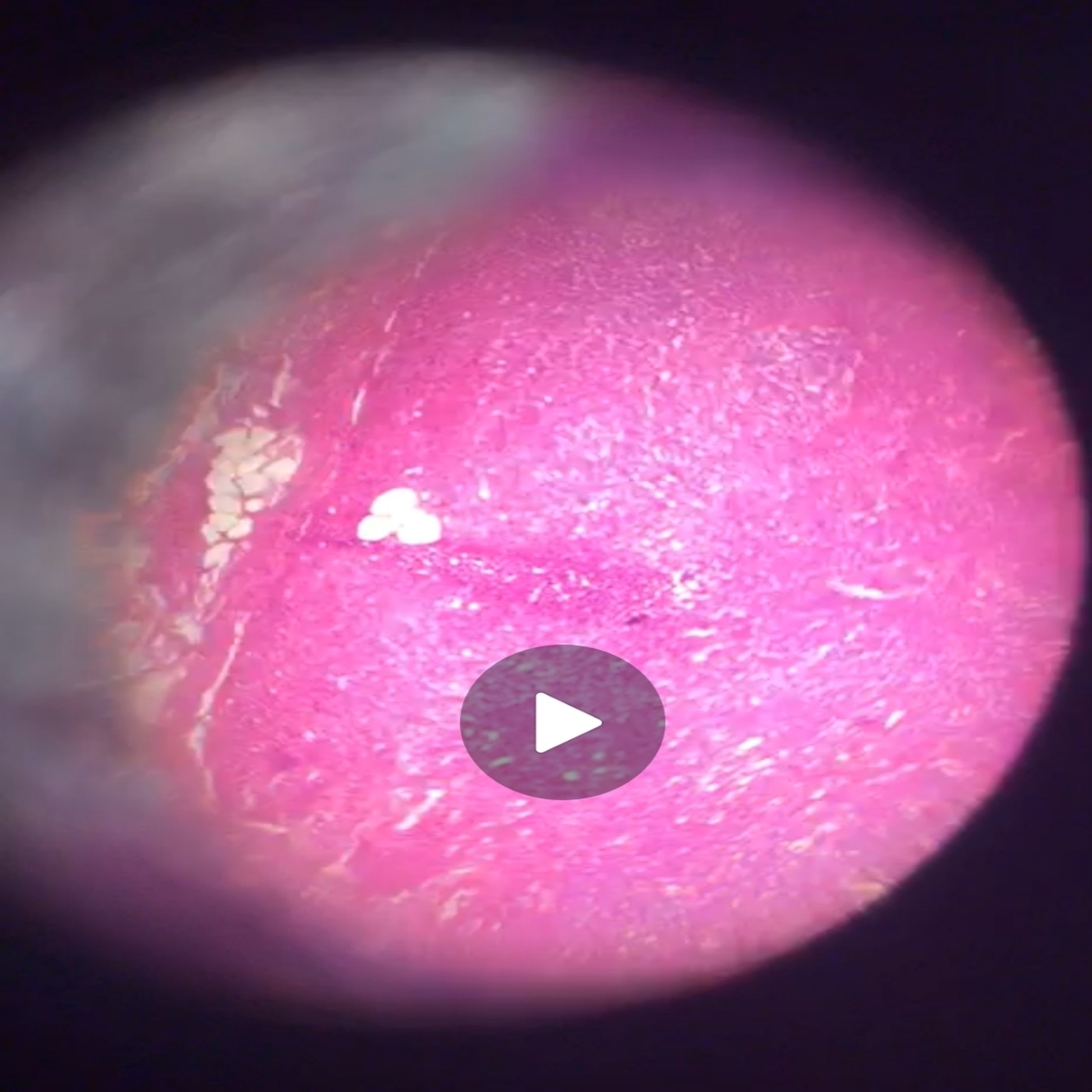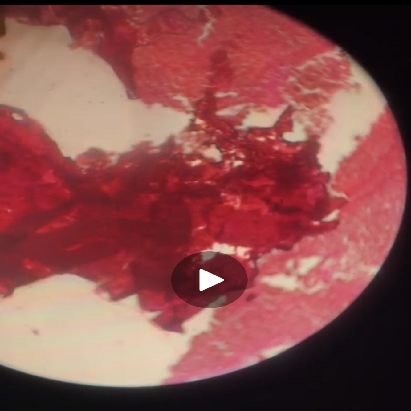 Red block with jagged edges and darker sections next to otherwise normal tissue
