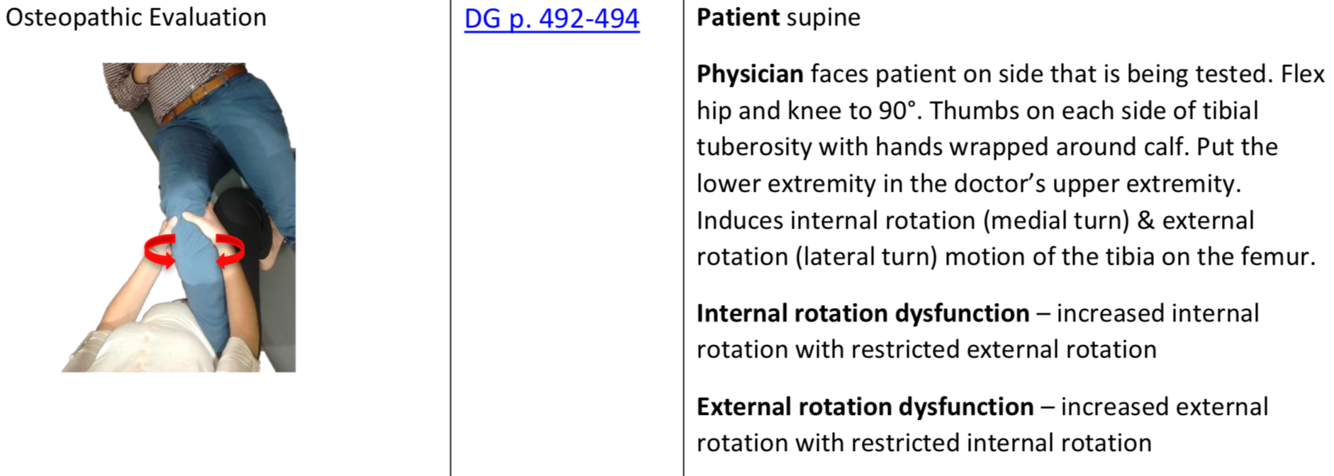 Osteopathic Evaluation of IR/ER of Tibia on Femur