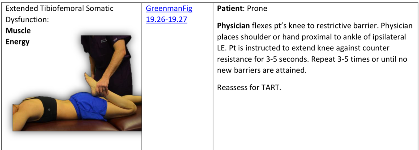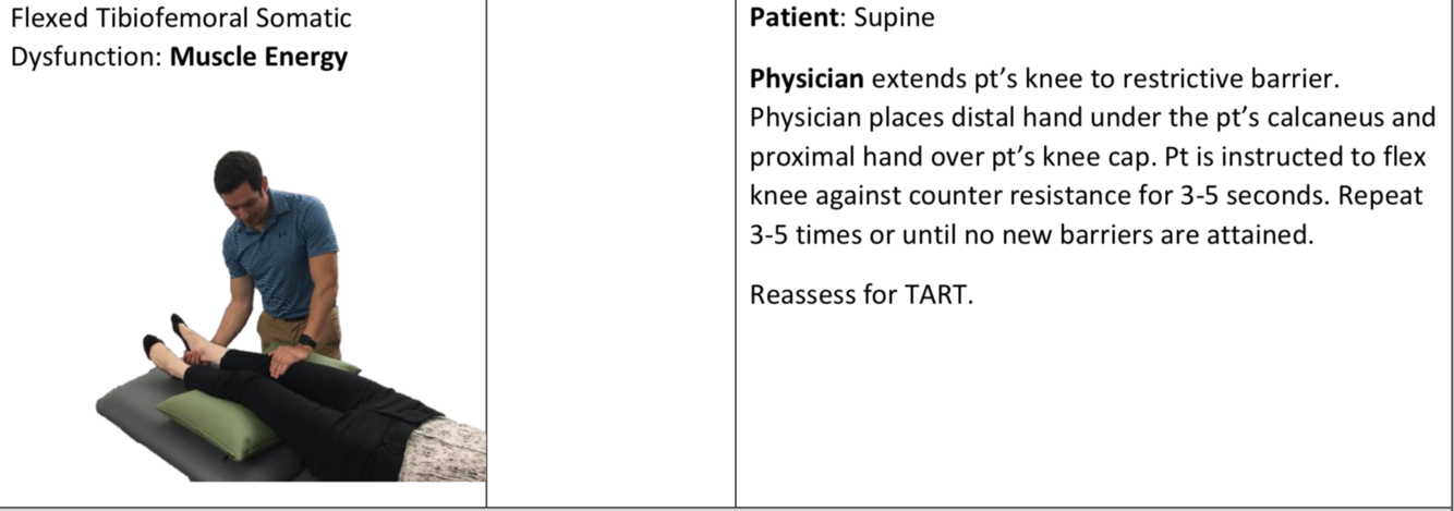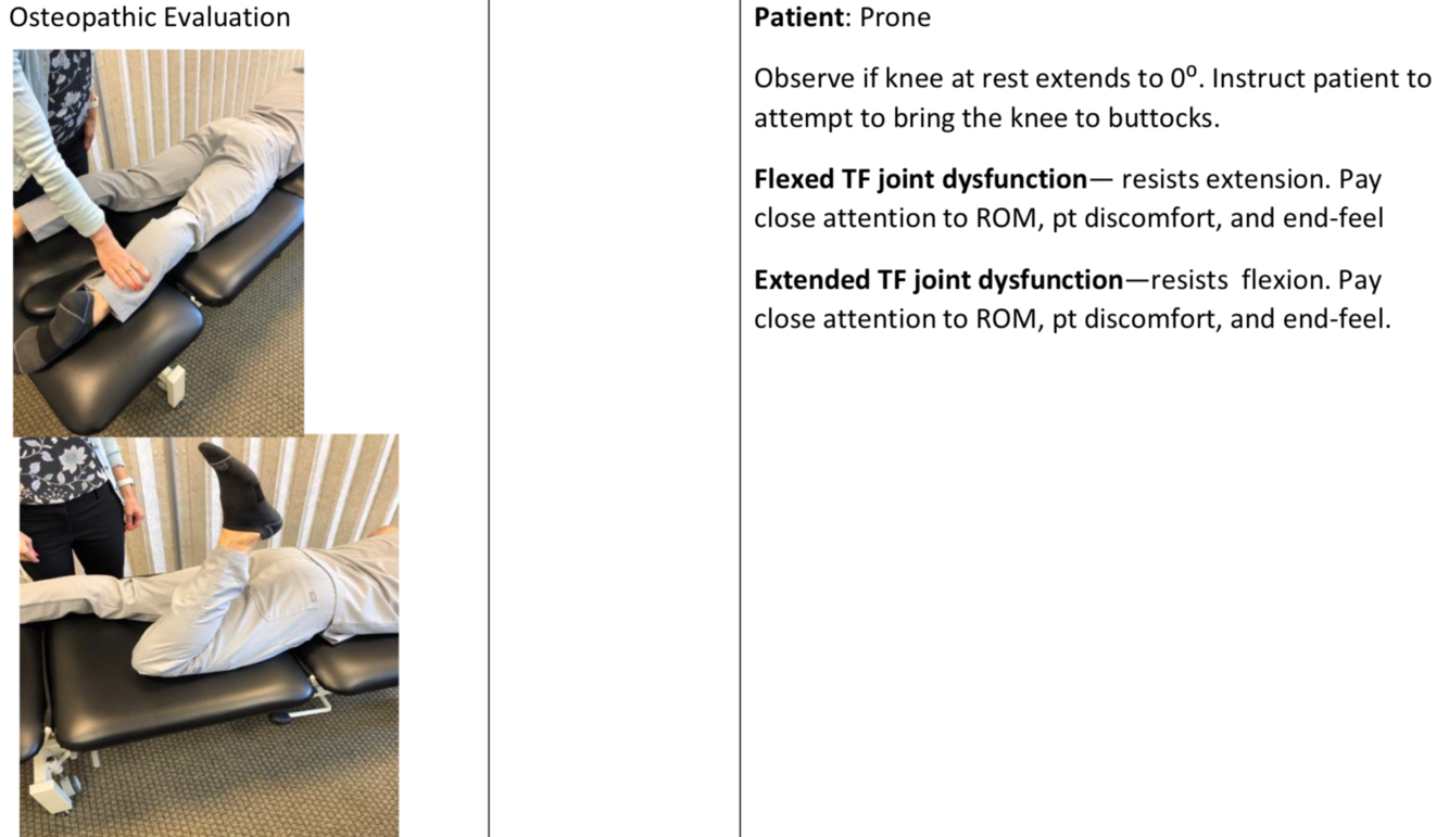 Osteopathic evaluation of Flexion/Extension of tibia on femoral