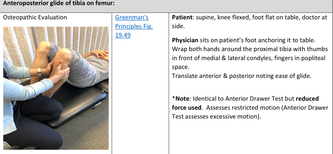 Osteopathic Evaluation - Anteroposterior glide of tibia on femur