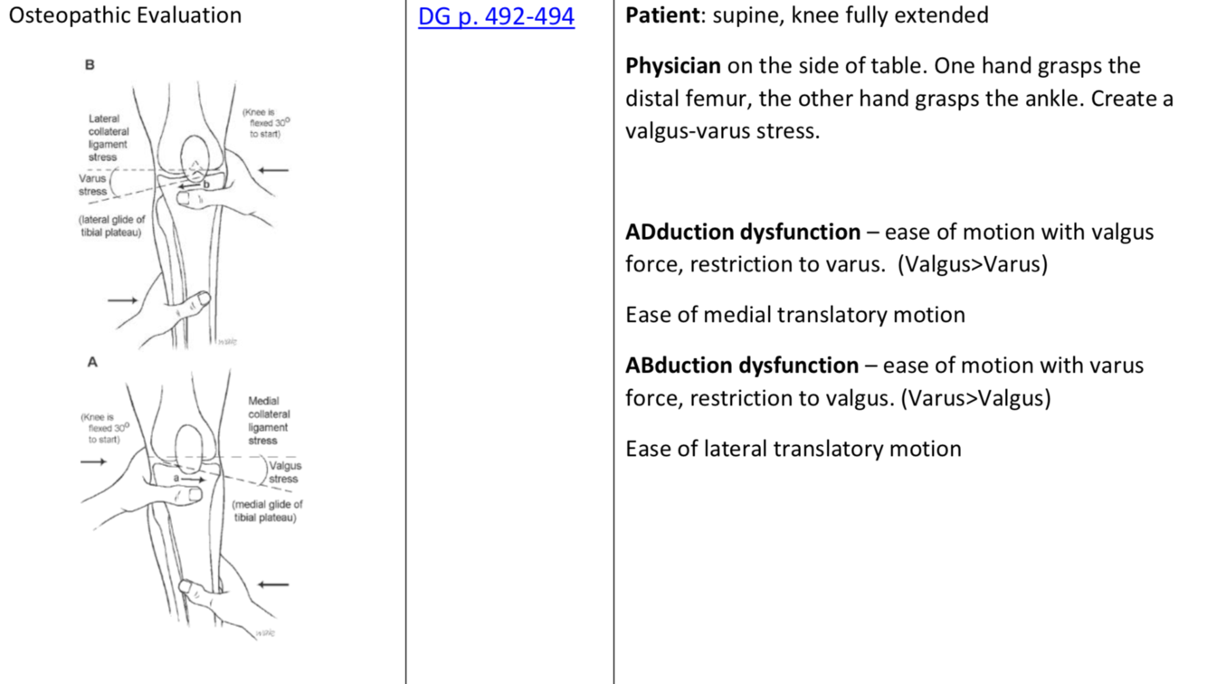 Osteopathic Evaluation - AB/ADduction of tibia on femur