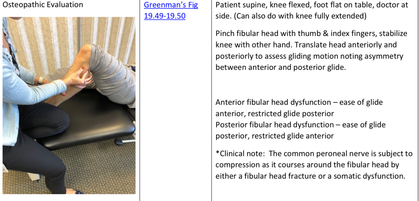 Osteopathic Evaluation - Proximal Fibular Head dysfunction