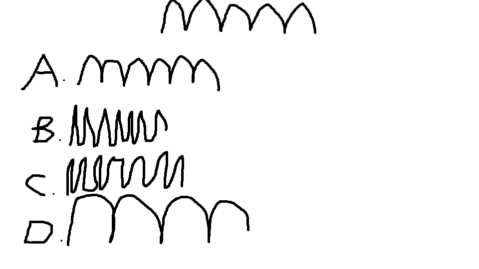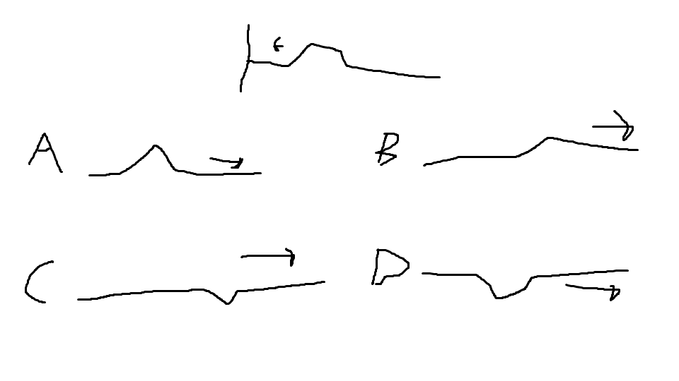 A pulse is sent down a string fixed at one end. Which one of the following diagrams best represents the reflected pulse?