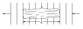 Water waves at the surface of a pond pass a floating log of length L. The log is at rest relative to the bank. The diagram shows wave crests at one instant.