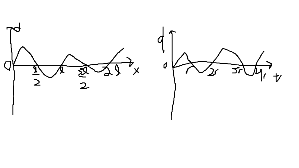 The displacement d of a particle in a wave varies with distance x along a wave and with time t as shown below.