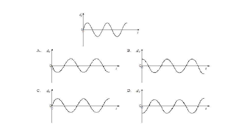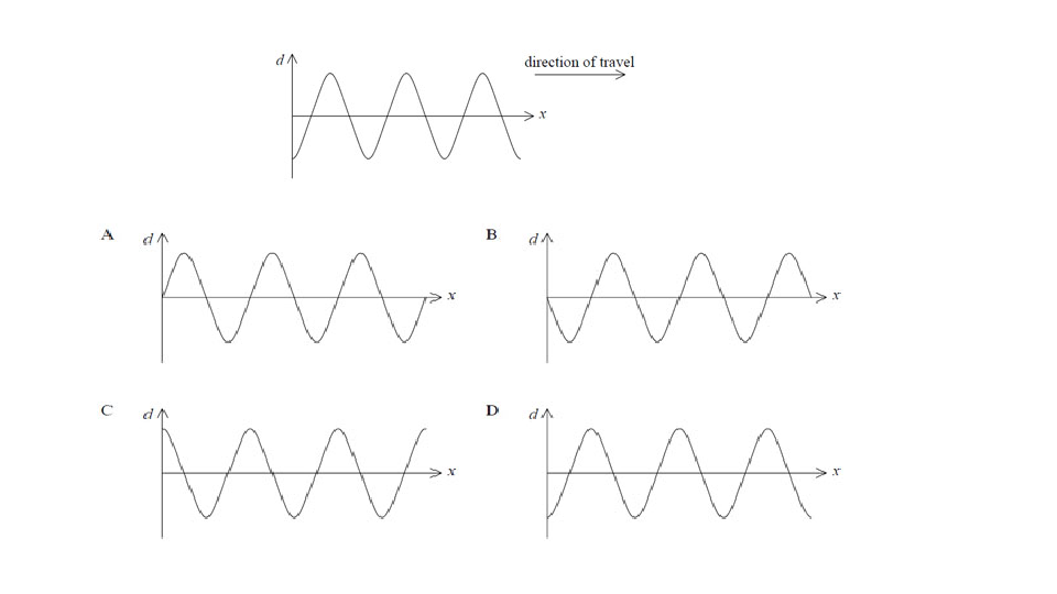 The period of the wave is T. Which one of the following diagrams shows the displacement of the wave at a time T/4 later?