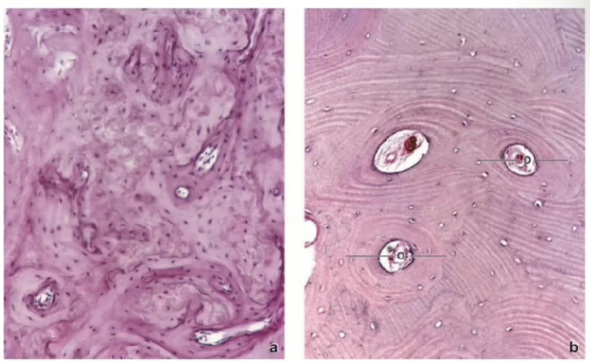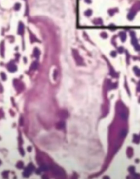 Osteona en formación: canales central donde pasan las venas, arterias y nervios que van nutrir el hueso