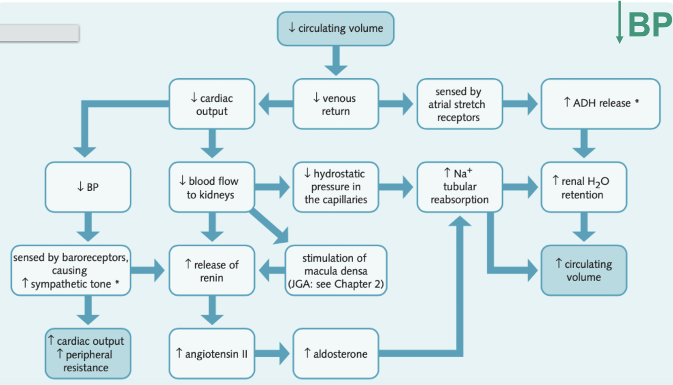 flow chart of the bodies response to reduced BP
