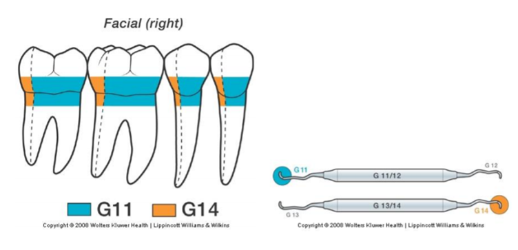 Which (2) gracey curets are used for the posterior facial aspect? RHS