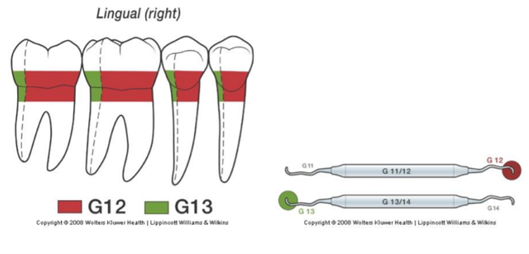 Which (2) gracey curets are used for the posterior lingual aspect? RHS