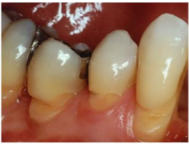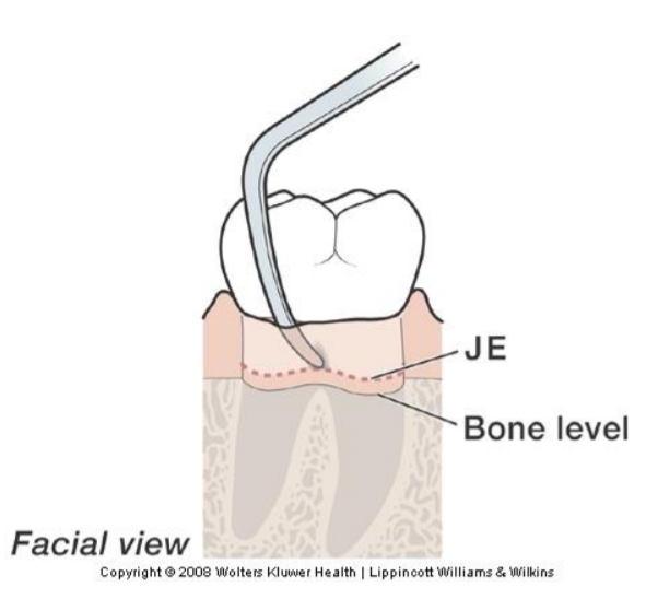 Class I. Concavity can be felt with probe. Probe tip cannot enter the furcation area.