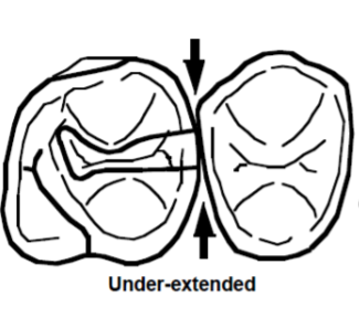 Gingival margin approx parallel with gingival contour (CEJ). Axial depth 1-1.2mm, 90 degree walls