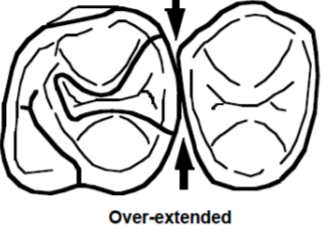 Lower shank is parallel to the proximal surface. Functional shank goes up and over the tooth.