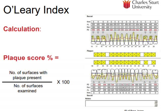 no. surfaces w plaque present / no. of surfaaces examined x 100 = %