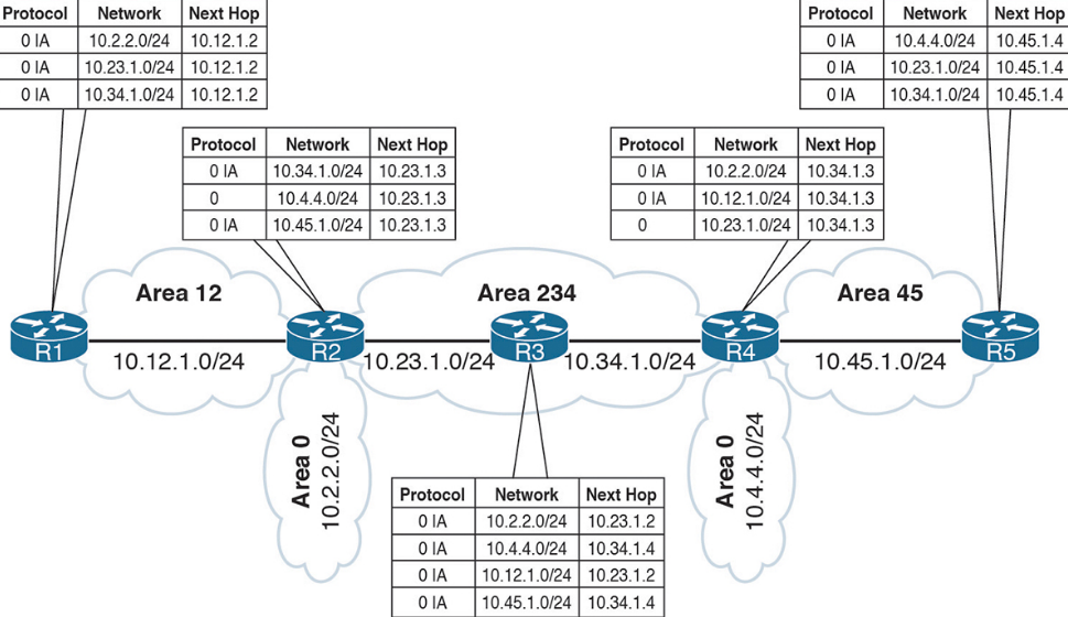 Most people would assume that R1 would learn about the route learned by Area 45 because R4 is an ABR. However, they would be wrong. ABRs follow three fundamental rules for creating Type 3 LSAs: