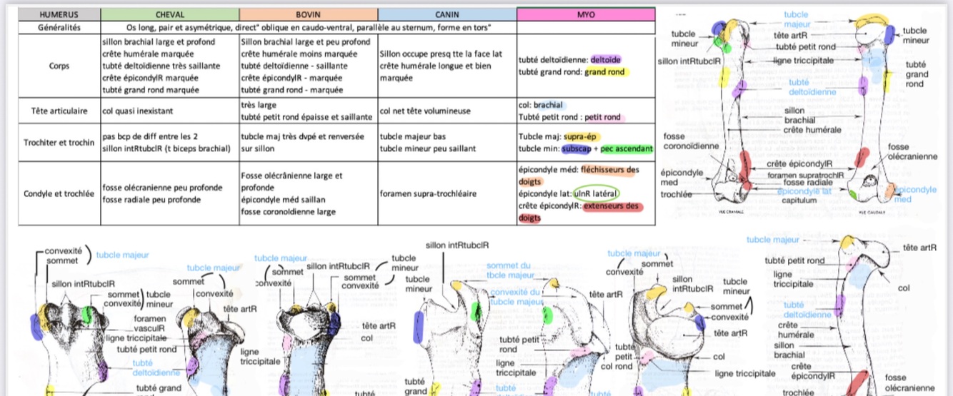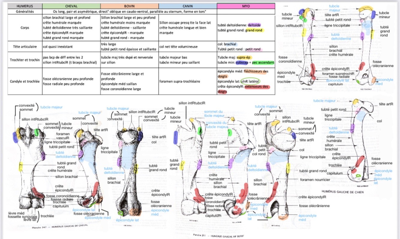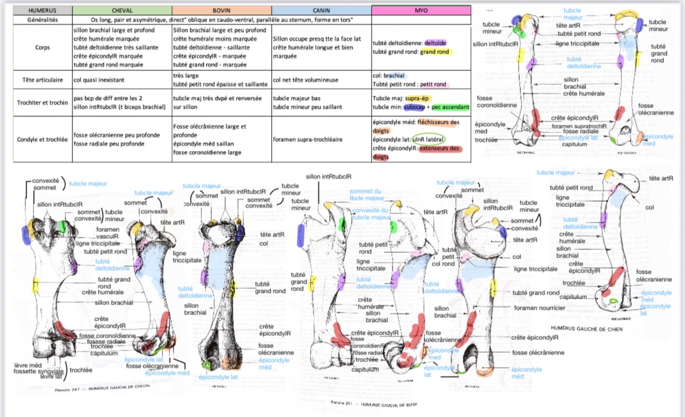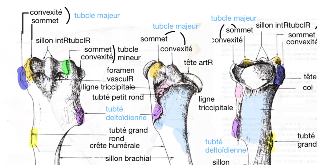 Humérus Différences entre tubercule majeur et mineur sur les 3 espèces