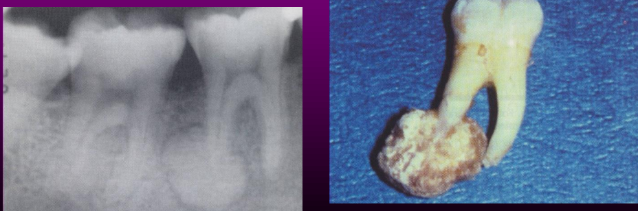 Origina-se dos cementoblastos. 50% afetam os 1º molares permanentes. Raro em dentes decíduos.