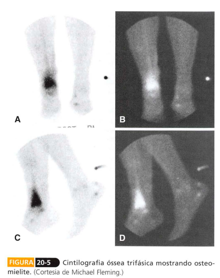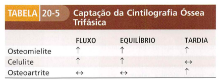 tecnecio é o mais comum e pode detectar infecção ate 48 horas após seu inicio. Usada para avaliação de osteomielite a fase tardia (4 horas após aplicação de ctte)