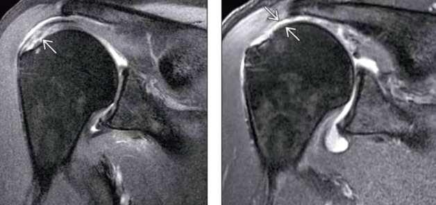 ¿Cómo se ve el desgarro de manguito rotador en RM?