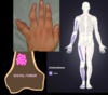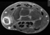 Aumento densidad y volumen en epicóndilo medial o lateral