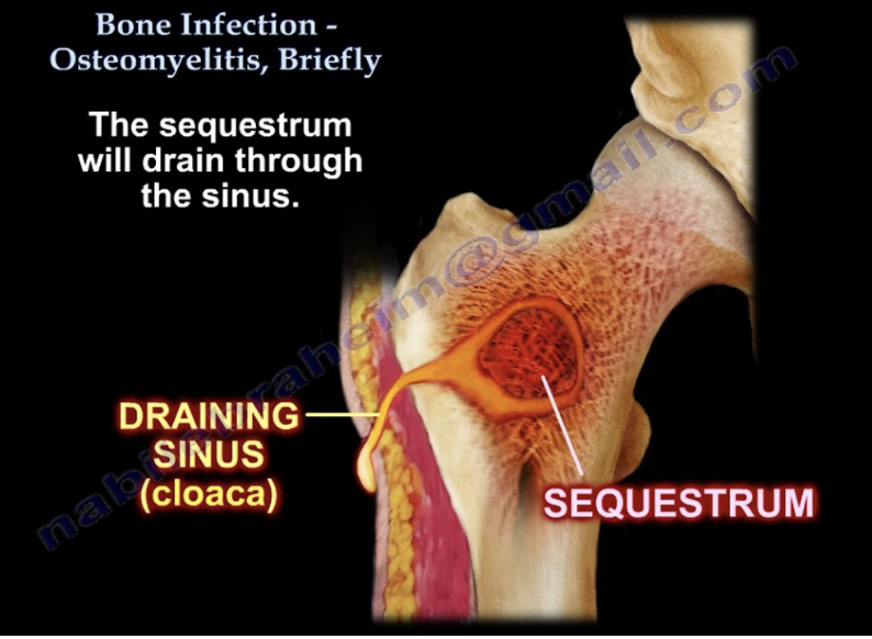 7 - pocker of dead tissue, called a sequestrum form