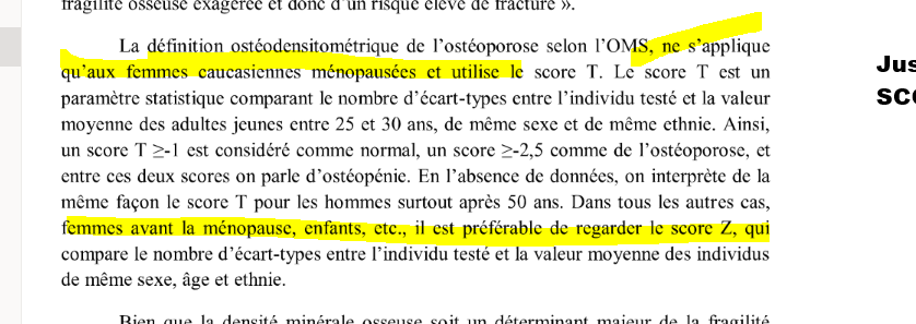 MAIS POUR FEMME AVANT MÉNOPAUSE, OU ENFANT…… on utilise le SCORE Z
