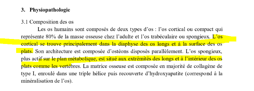 compare la localisation de l,os CORTICALE vs SPONGIEUX