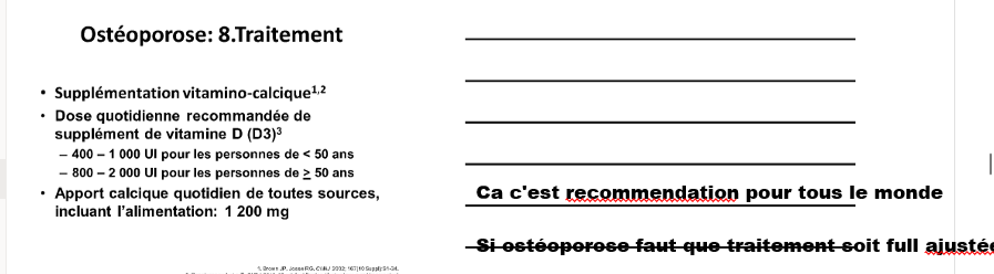 quel dose de supplément de vit d que tu recommanderait à ton patient et quel apport en calcium?