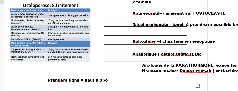 donne les 2 différentes familles de traitement pharmaco de l’ostéoporose